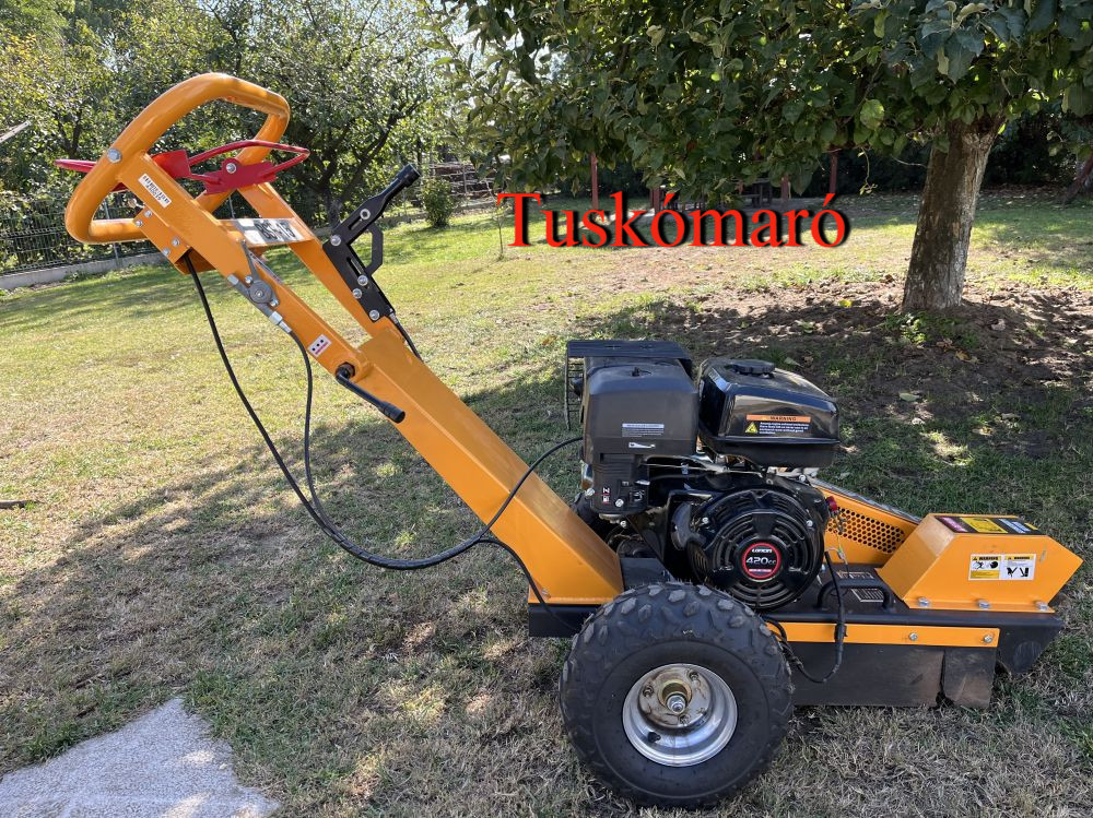 A tuskómarás során nagyteljesítményű gumikerekes tuskómaró géppel szabadítom meg a tuskóktól, amik akár évek óta zavarják kertjének karbantartásában.